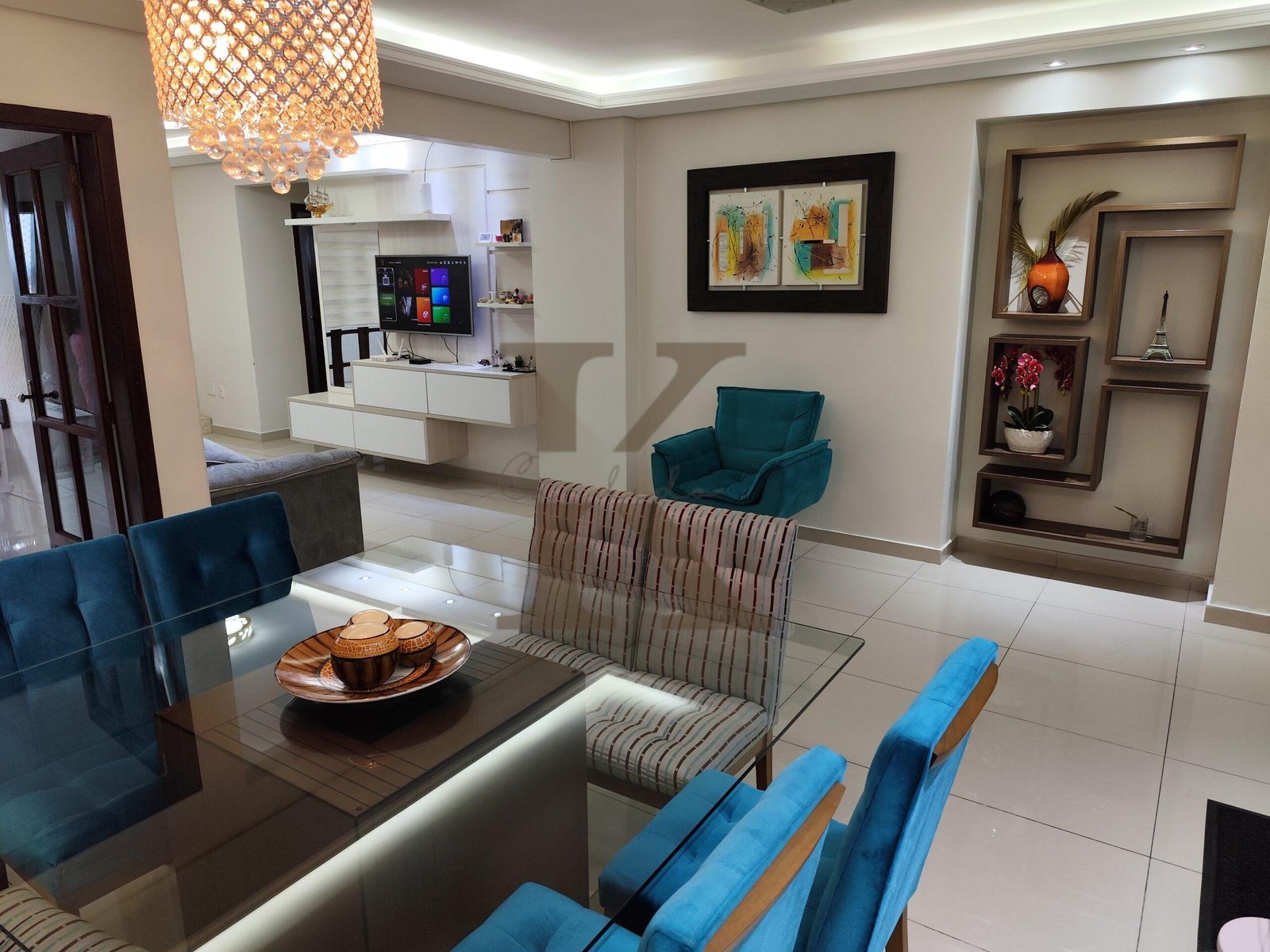 Na entrada do apartamento você já tem a primeira surpresa, uma ampla sala de estar e jantar, geralmente estamos acostumados com uma distribuição de espaço em estilo “corredor”, mas neste imóvel realmente o espaço é generoso!