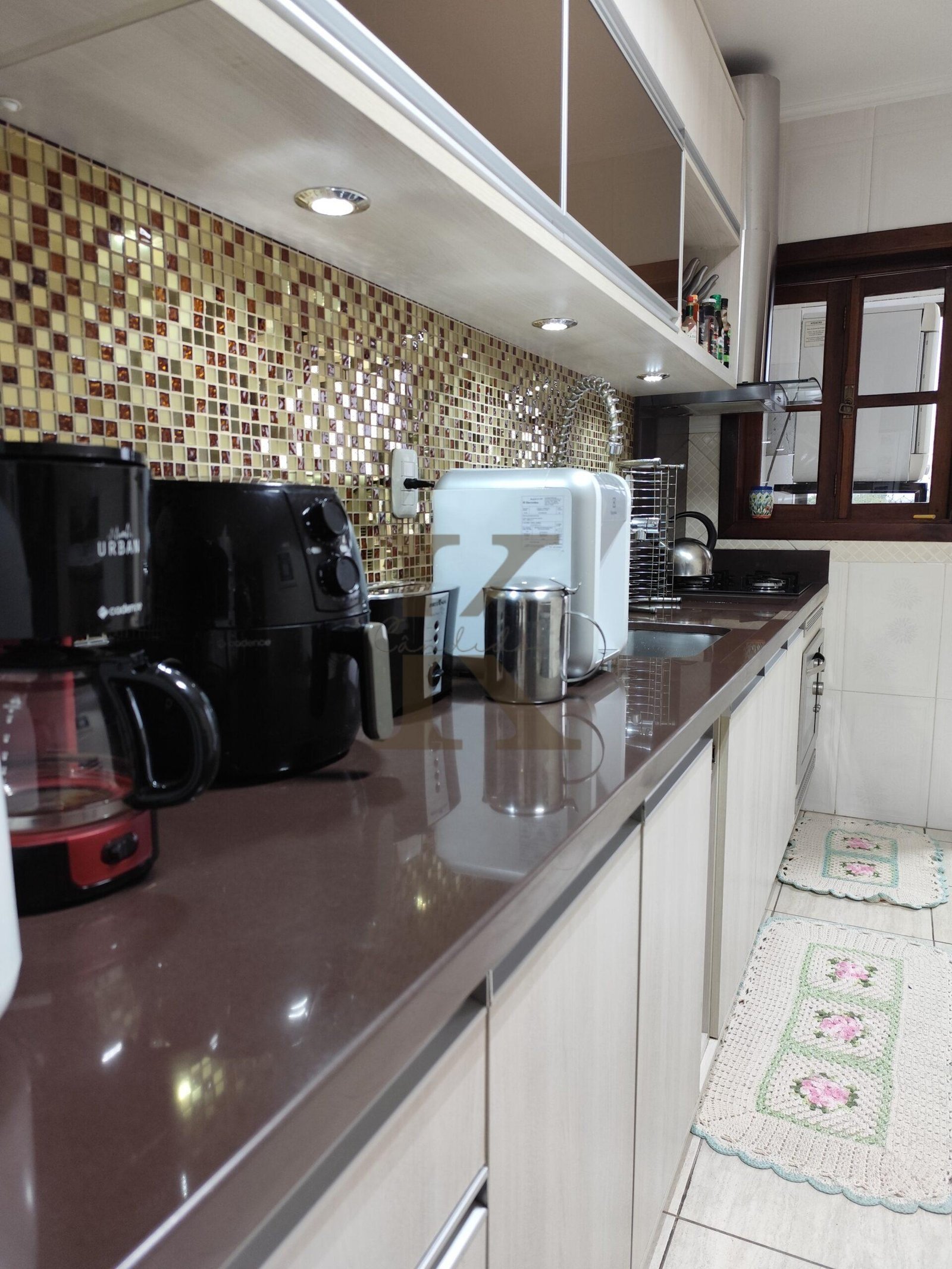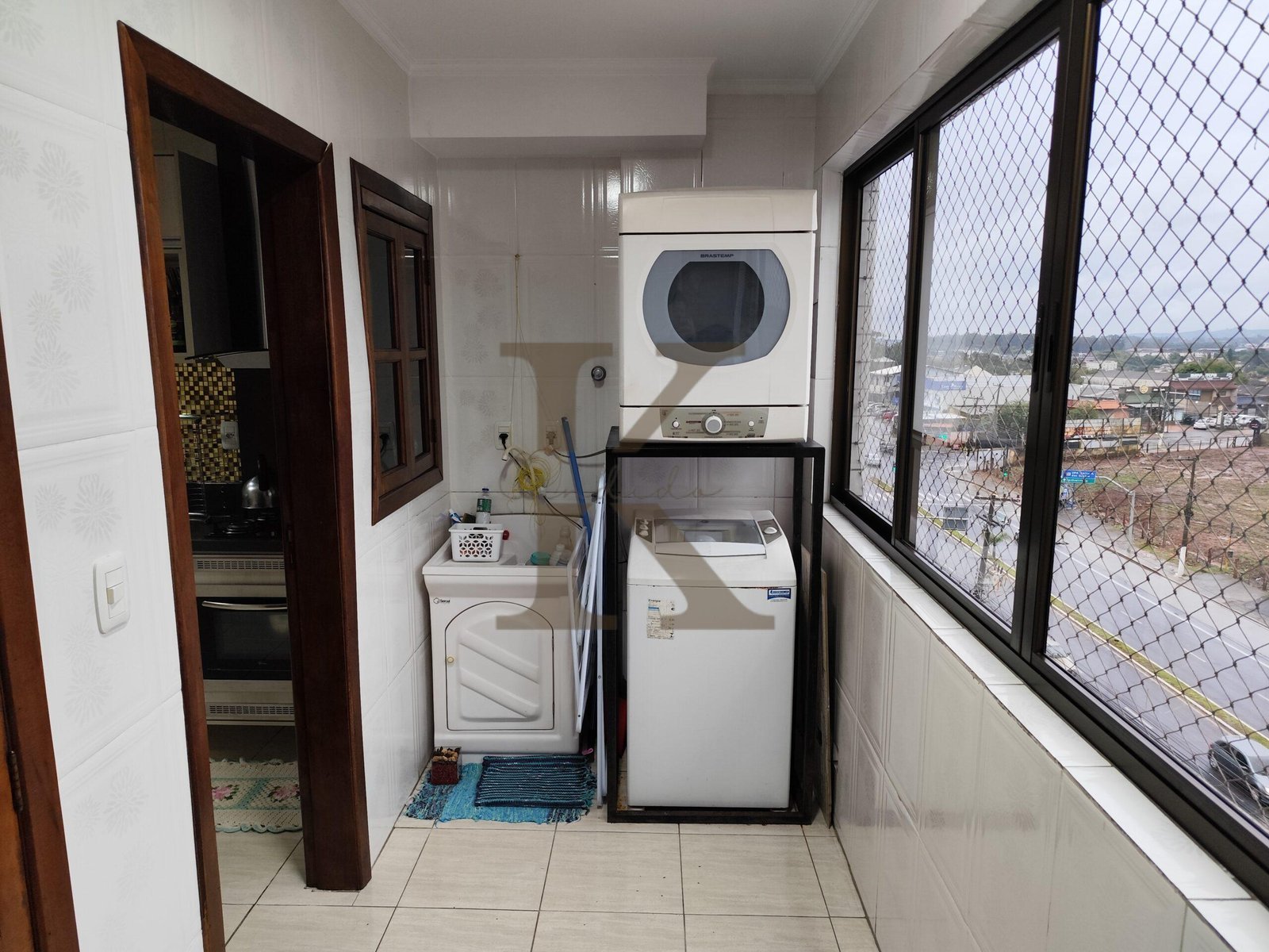 Cozinha com mobilia, area de serviço e gormet com vista para avenida principal.