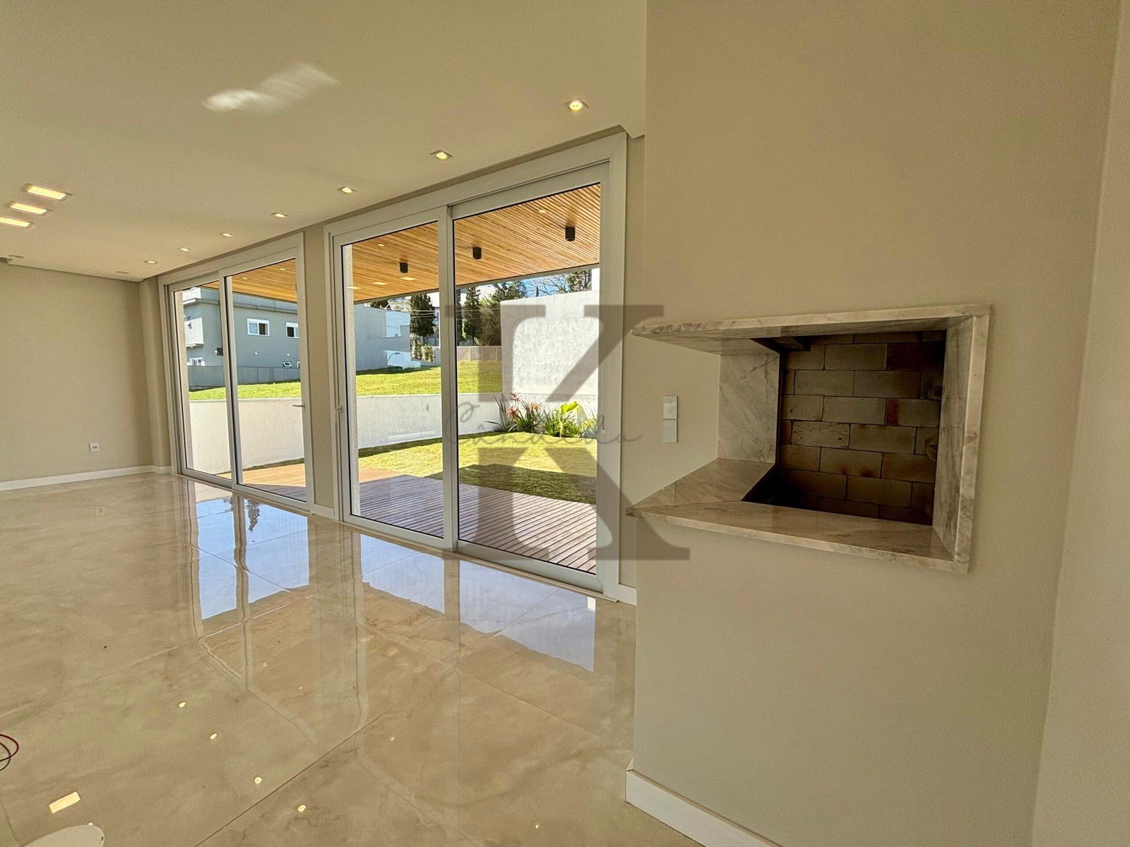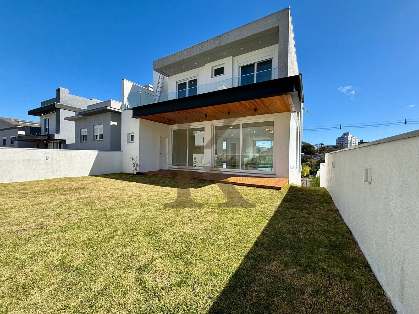 Destaque para a varanda com deck e forro ripado, iluminação natural abundante, automação completa com comandos touch, e espaço para adega ou home office. São 4 vagas (2 cobertas), espera para energia fotovoltaica e área preparada para piscina.