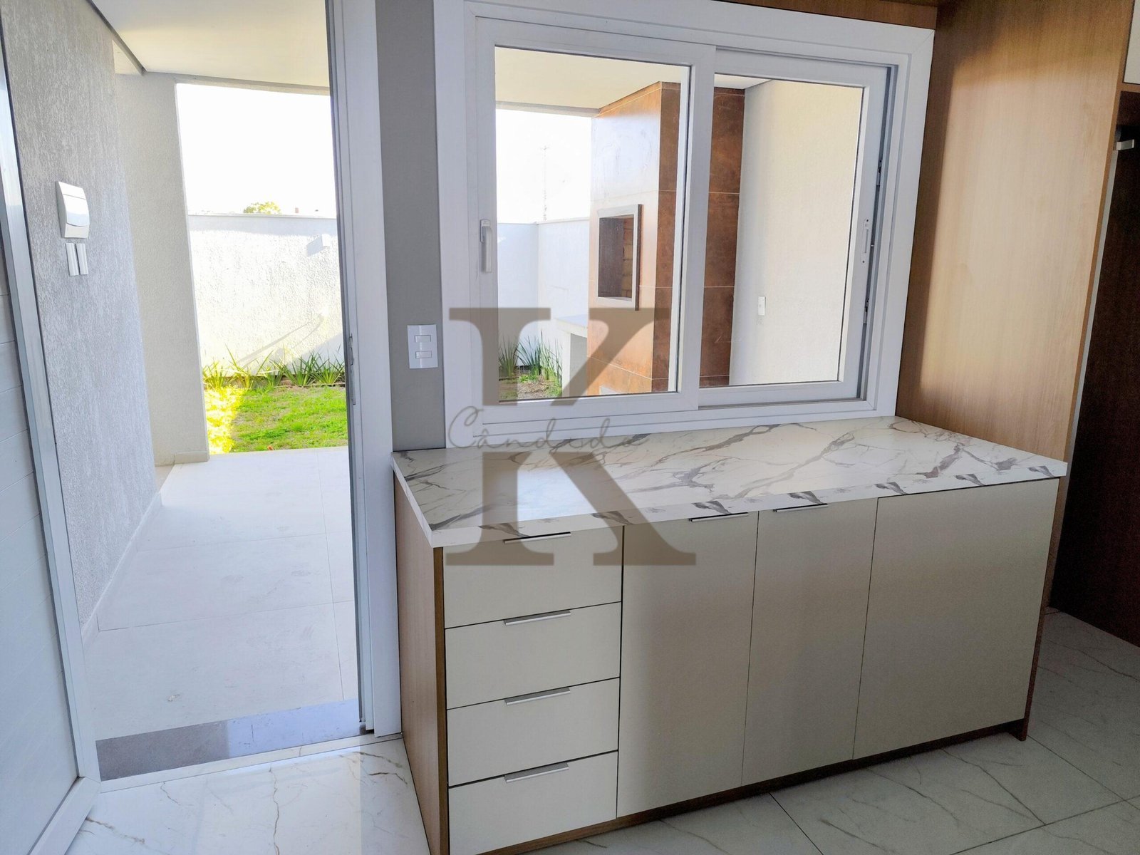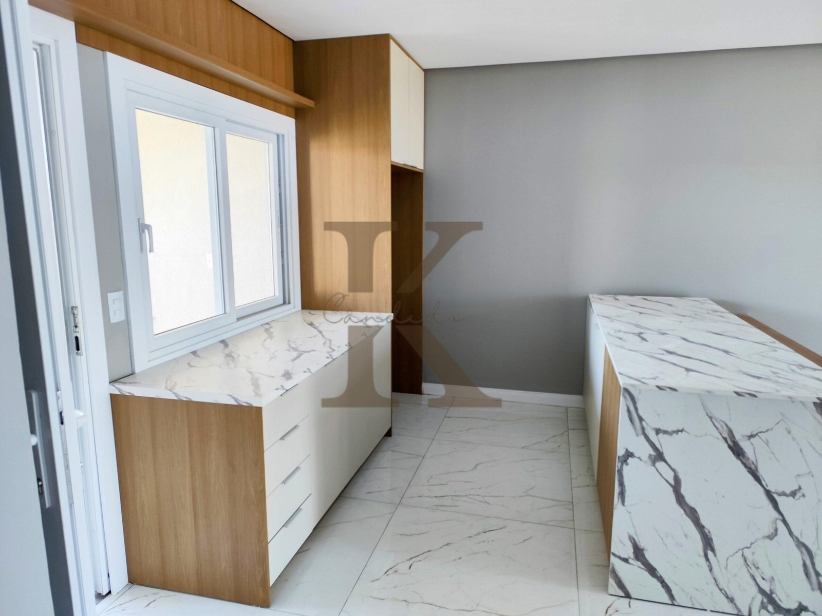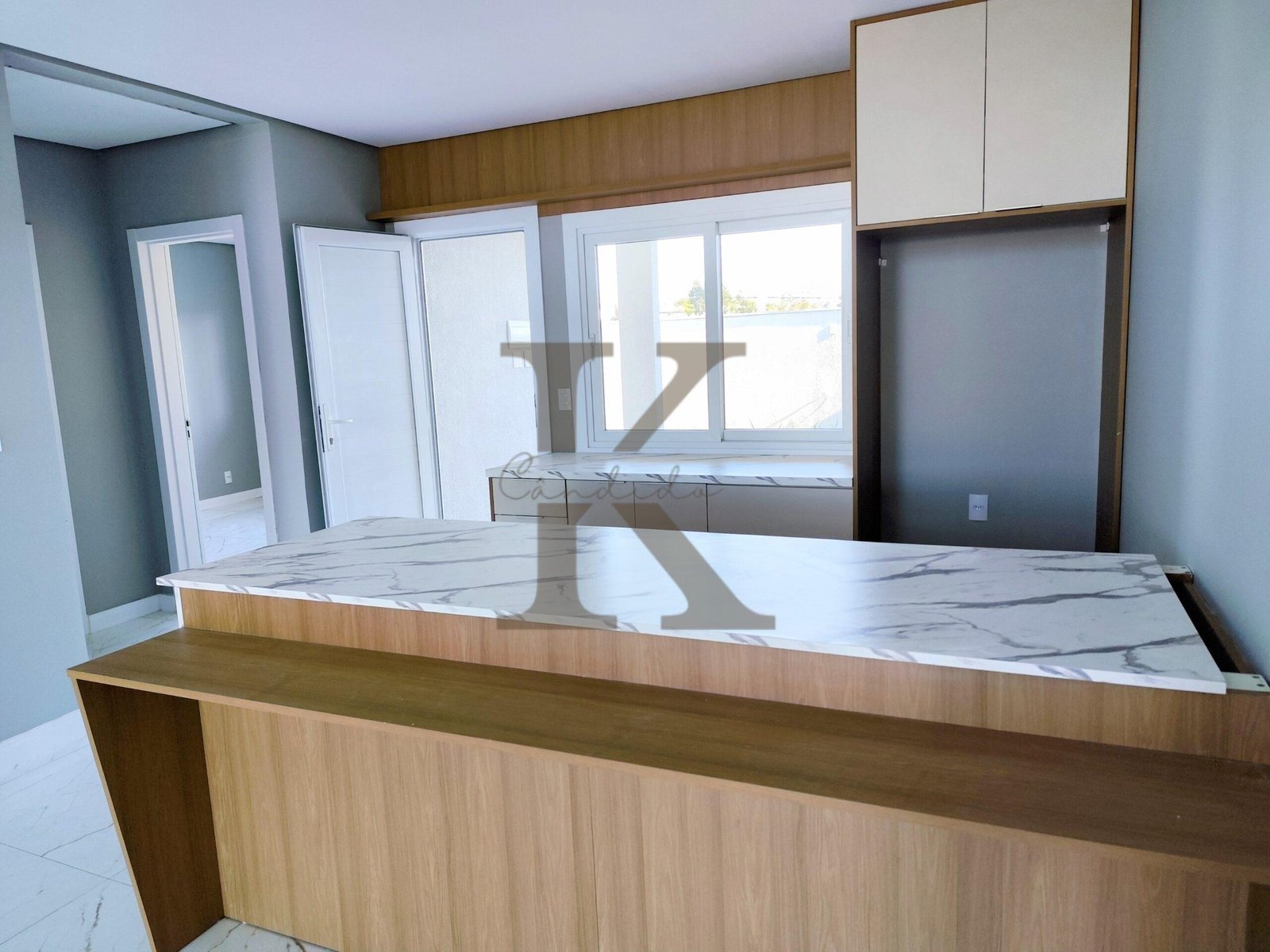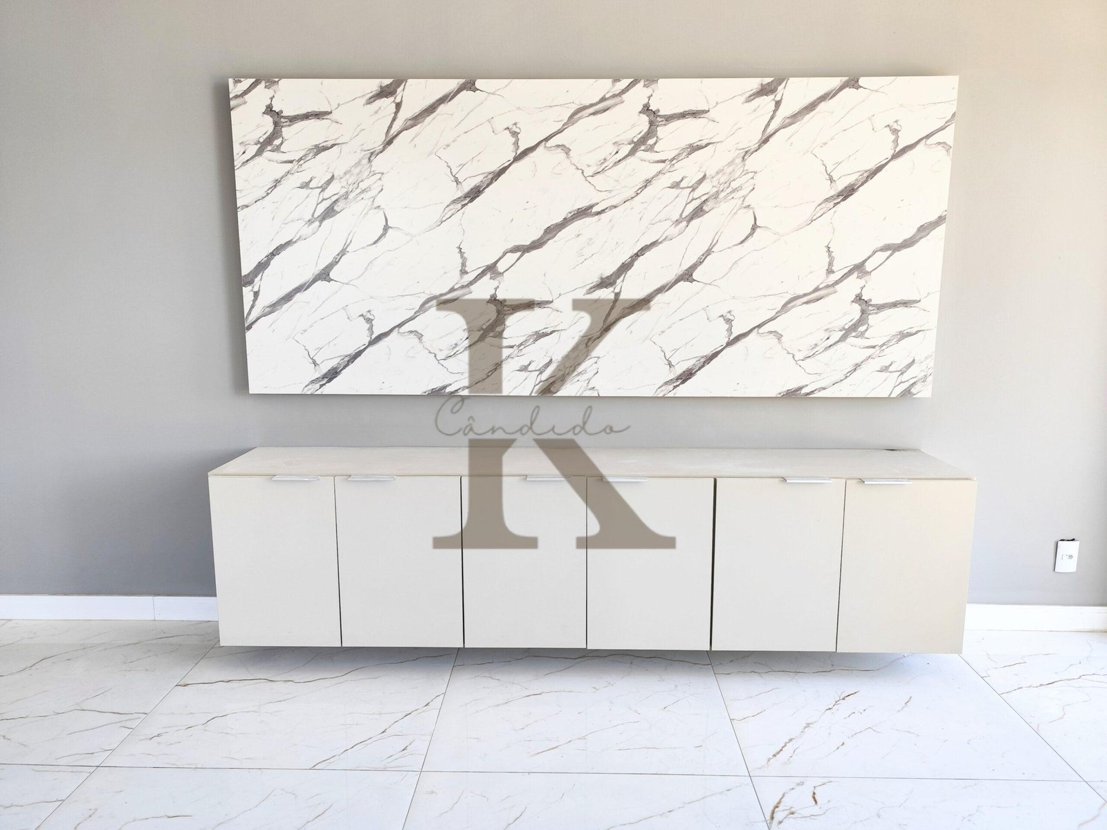 Aberturas externas em PVC, garantindo durabilidade e maior isolamento acústico. Cozinha conta com mobilia planejada, sala de estar com painel e balcão.