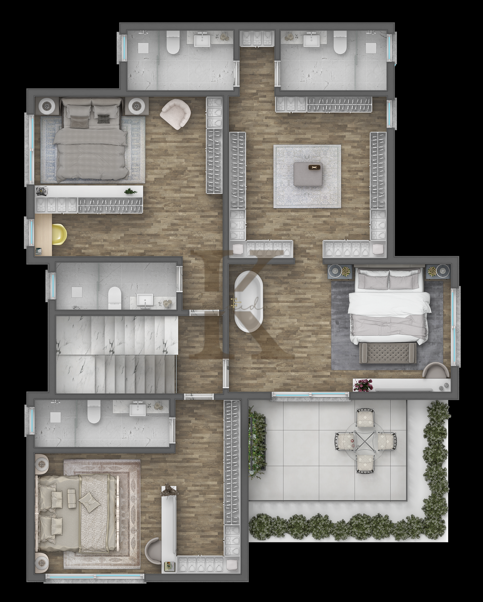 • 5 suítes, sendo 2 localizadas no pavimento térreo – ideal para acessibilidade e praticidade