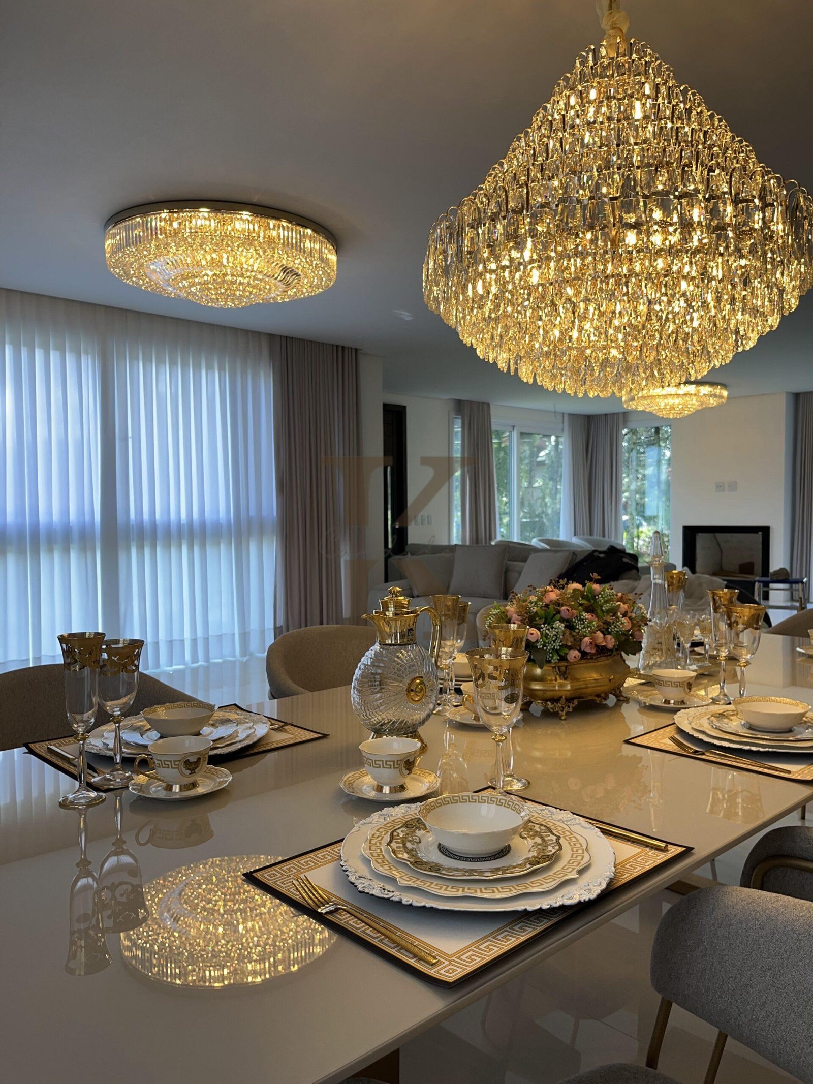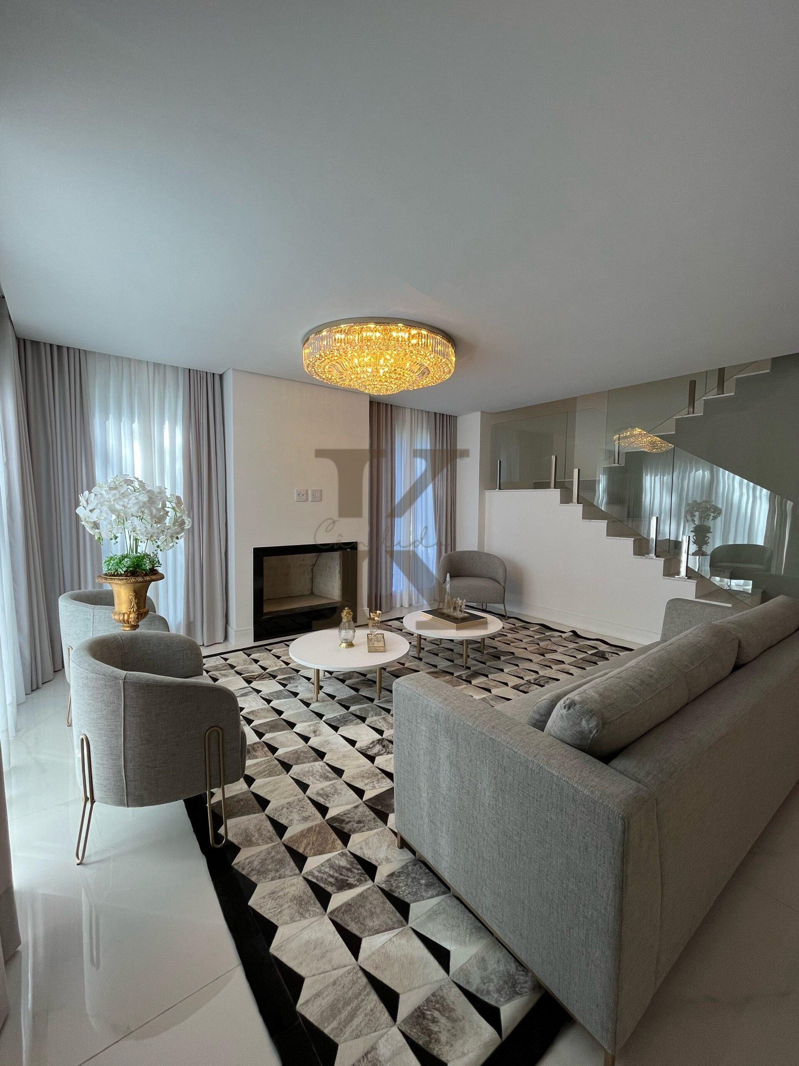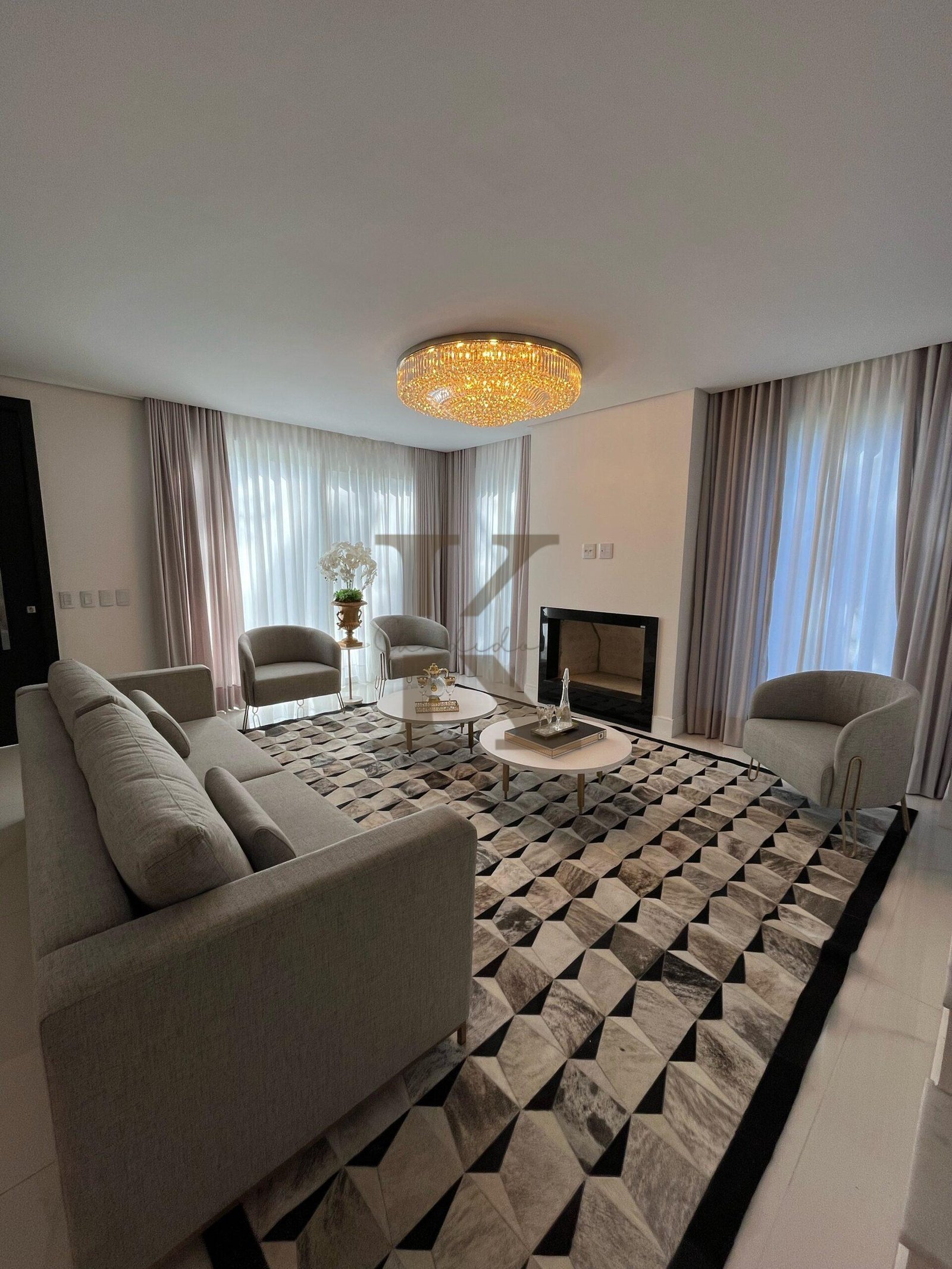 • Living com lareira, ambientes de TV e jantar bem distribuídos