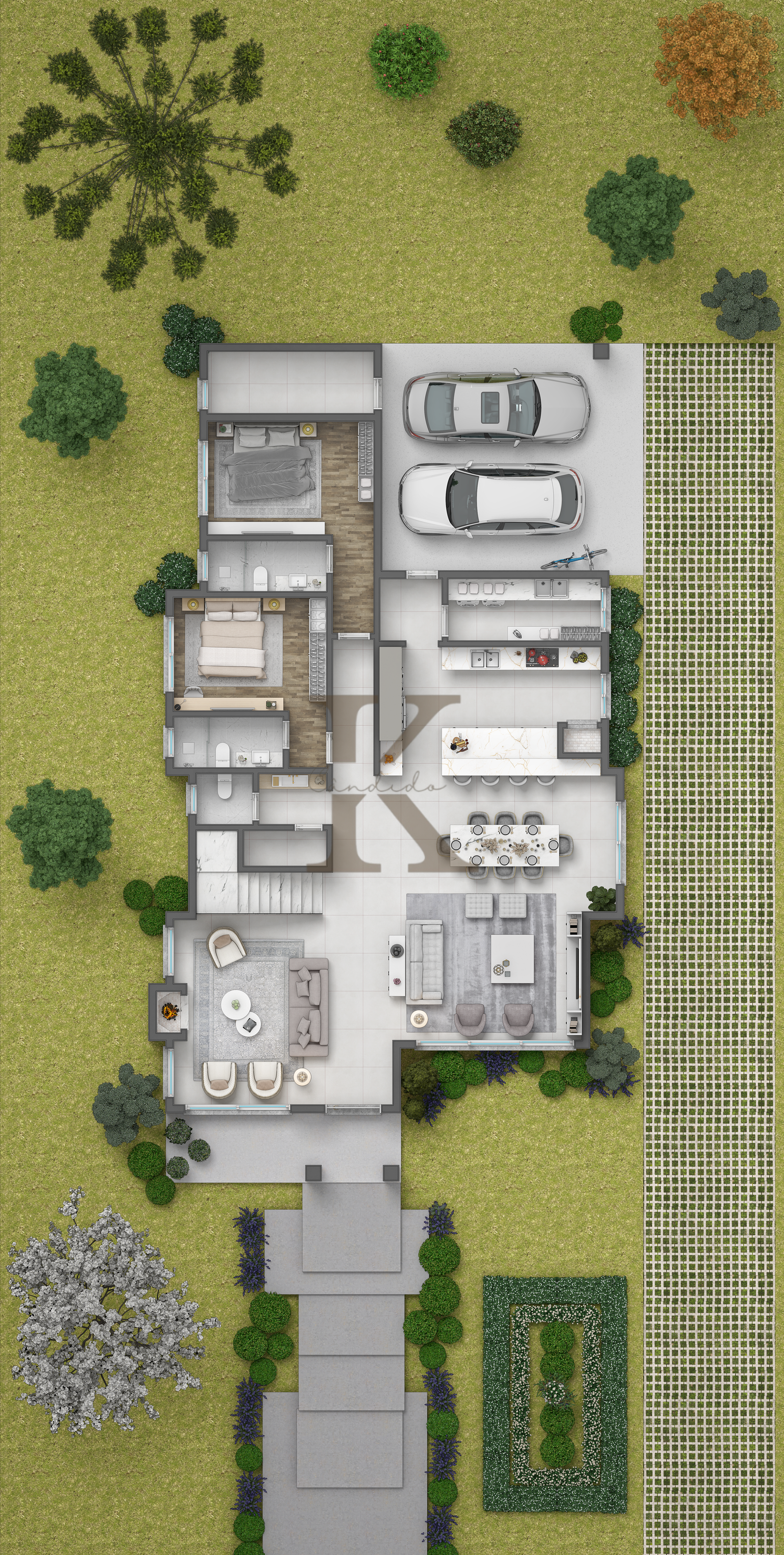Com 371m² de área construída em um terreno de 800m², esta casa foi pensada para oferecer conforto absoluto em todos os ambientes, com acabamentos de alto padrão e integração com a natureza ao redor.