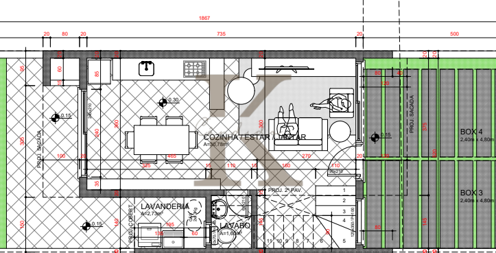 Churrasqueira e lavanderia no piso térreo.